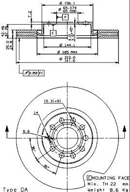 Disco freno anteriore Audi 100-A6-A8 cod.09.7728.11