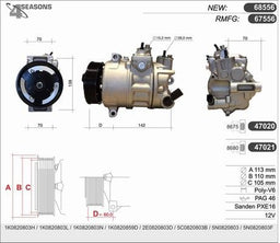 Compressore Climatizzatore Audi A1 (8X1,8XK) dal 05/2010 al 10/2018 codice 67556
