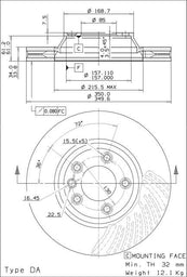 Disco freno anteriore Porsche cod.09.a062.11