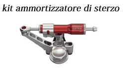 Kit ammortizzatore di sterzo completo di attacchi, pronto al montaggio, con posizionamento laterale.