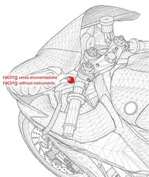 Kit ammortizzatore di sterzo completo di attacchi, pronto al montaggio esclusivamente su moto di tipo Racing, senza ventola e accessori elettrici nella carenatura anteriore.