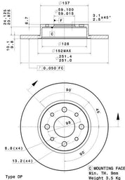 Disco freno posteriore Alfa Romeo cod.08.a915.10